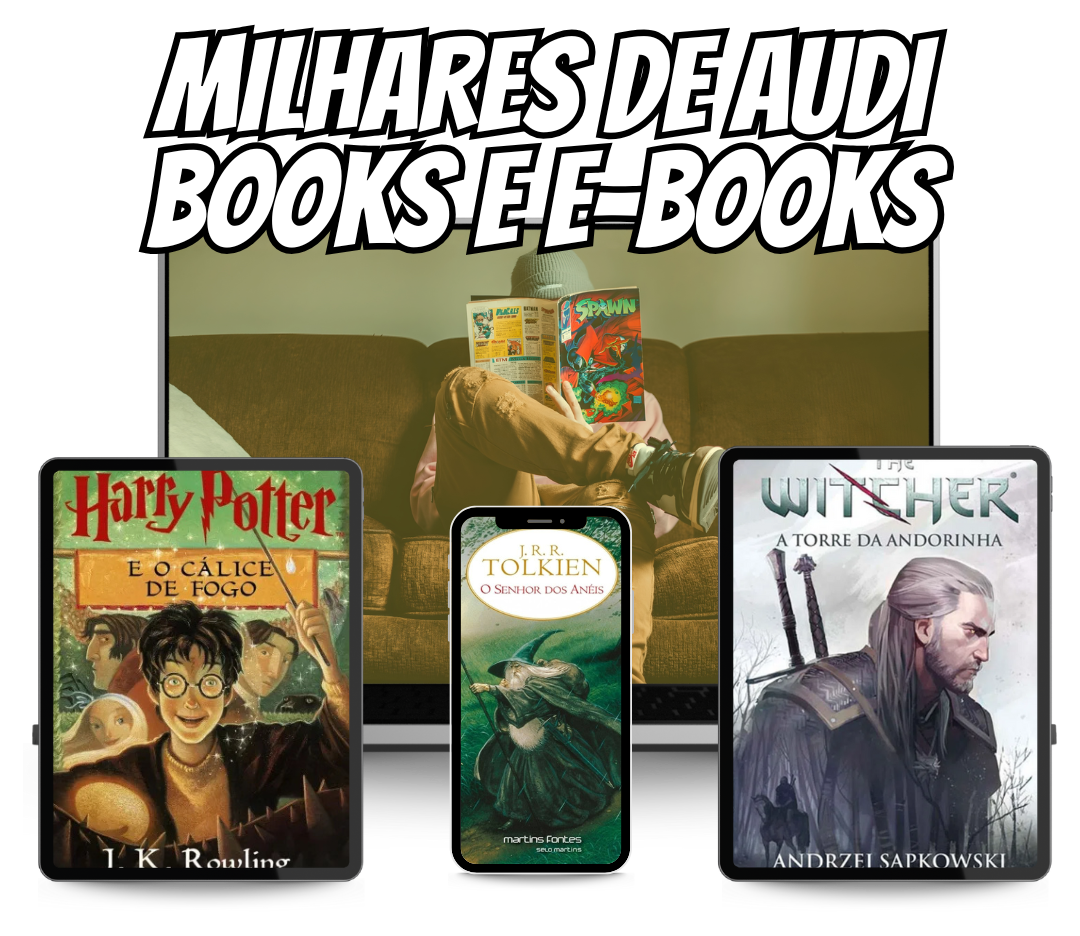 Mais de 20.000 audiobooks e e-books para complementar sua experiência de leitura. Diversão garantida!
