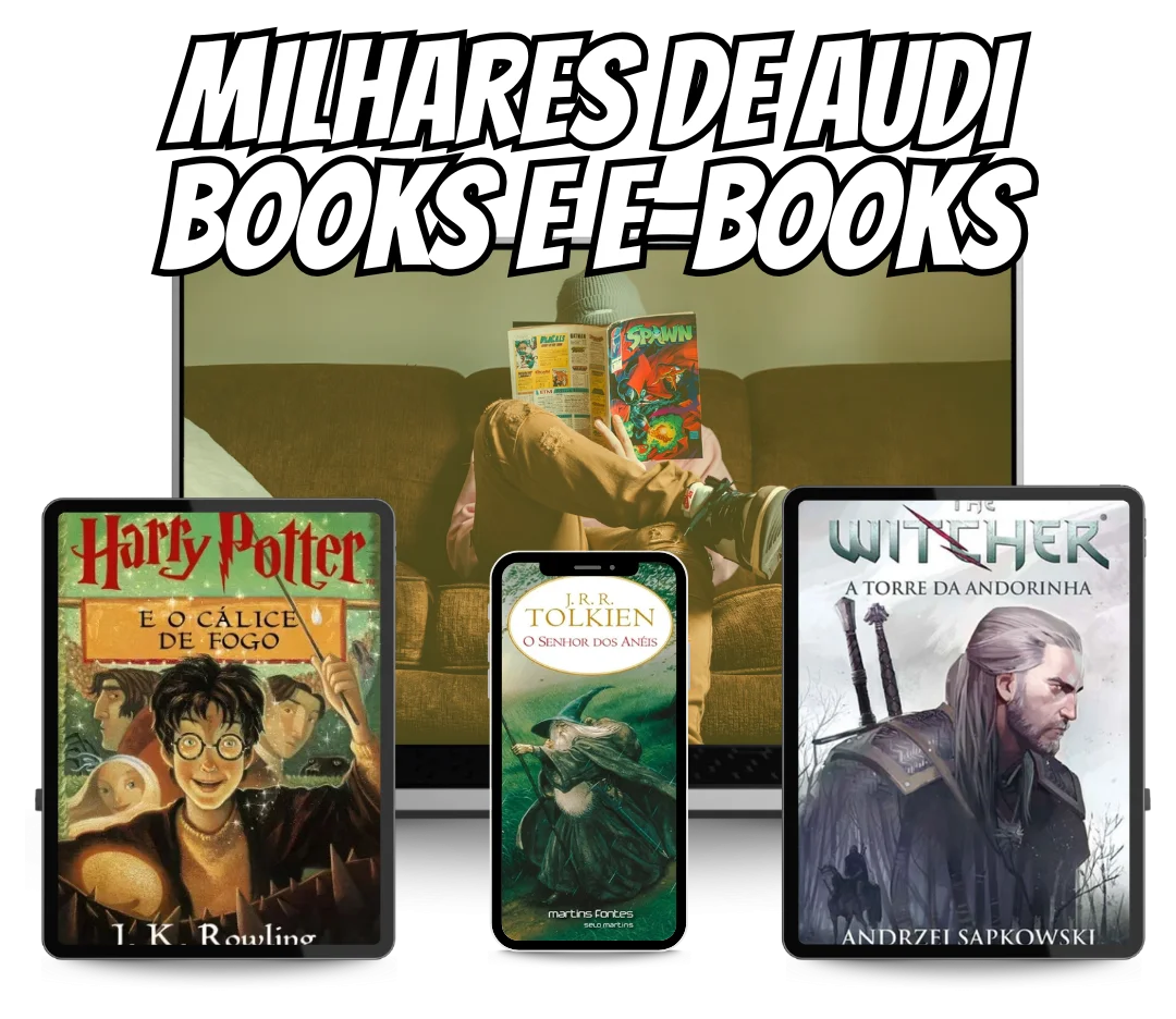Mais de 20.000 audiobooks e e-books para complementar sua experiência de leitura. Diversão garantida!
